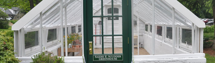 The Saidie E. Scudder Greenhouse was made possible only by joint efforts. Nassau County removed the rusted oil tank, the piles of broken glass and rotten wood, and the derelict heating system. Harry Whaley & Son substantially underwrote the cost of installing electricity. Bob Thornton of Oakwood Construction was responsible for the meticulous reconstruction work and donated a significant portion of his own time. The North Country Garden Club was instrumental in the project from start to finish and generously covered the major construction costs.”