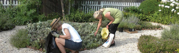 The Earle-Wightman House is the home of the Oyster Bay Historical Society. Members of the North Country Garden Club planted this 18th century style garden in the back of the c. 1720 house and have been caring for it for fifty years. The five geometric flower beds surrounding a sundial and stone paths were originally designed in 1974, redesigned in the early 1990s and newly refurbished during the summer of 2025. Improvements included a new picket fence, new pebbles on the paths and a new drip irrigation system. Aging plant material was removed and the beds were planted with chrysanthemums as place holders until new plants are added in the spring. The plan is to install a colonial physic (medicinal) garden, a potager (kitchen) garden, and a children’s garden with plants that can be held, felt, seen and inhaled.