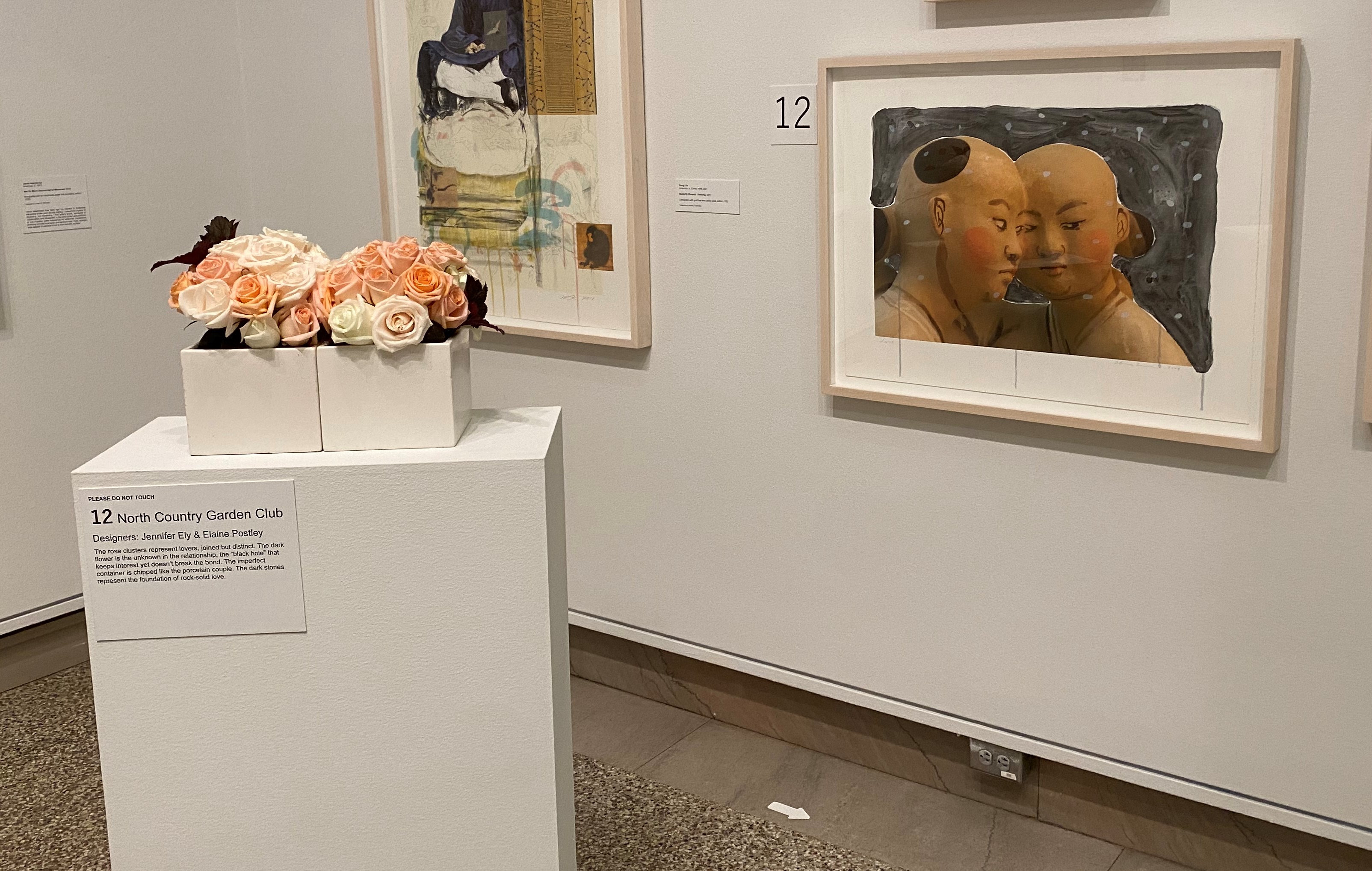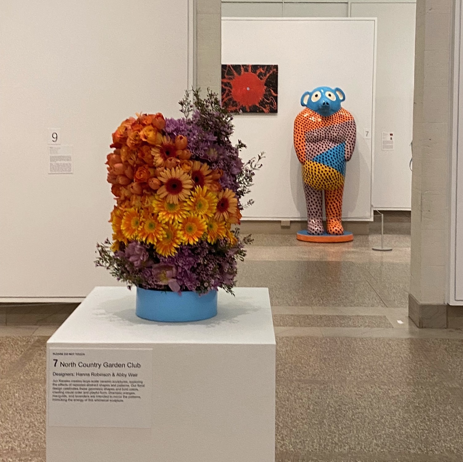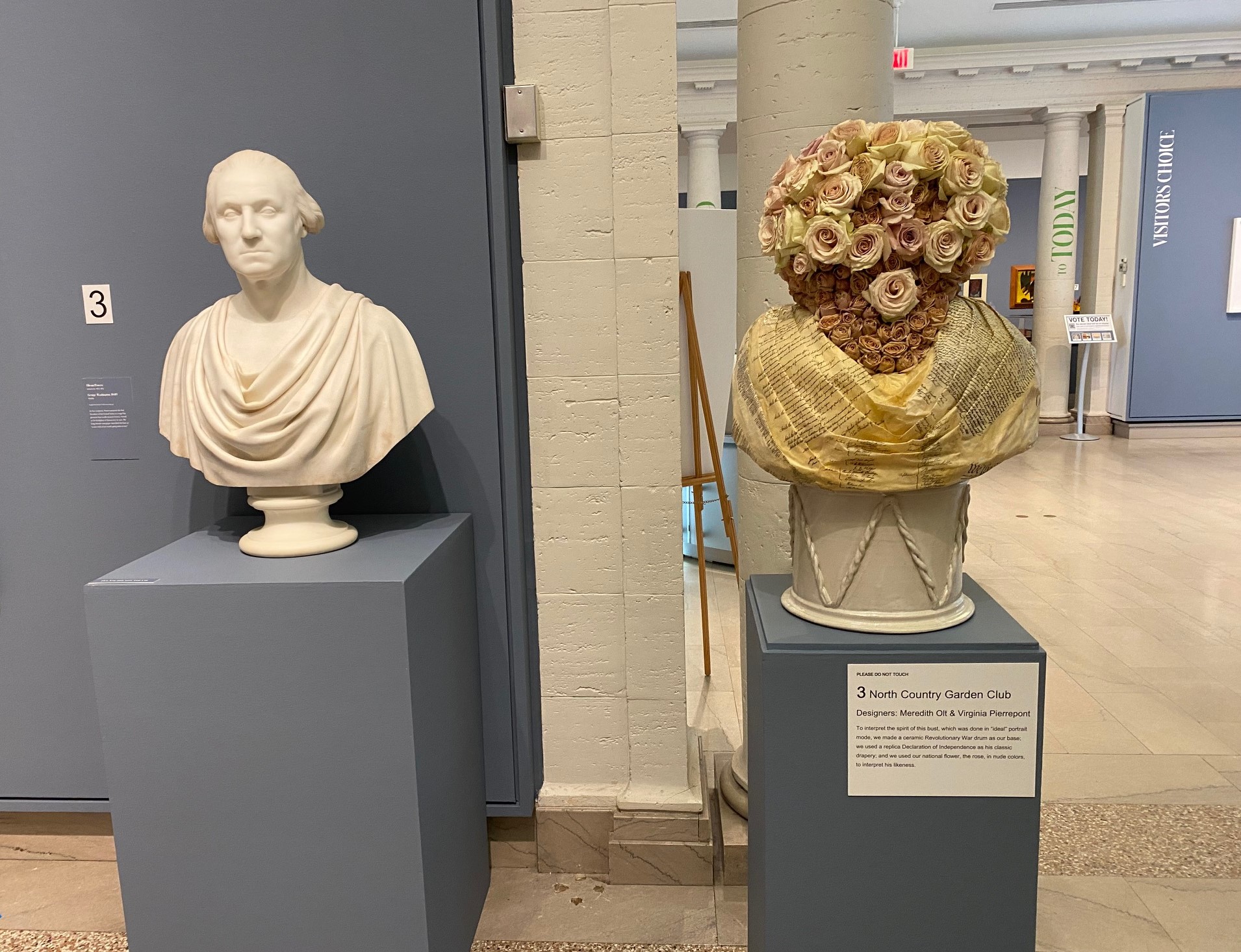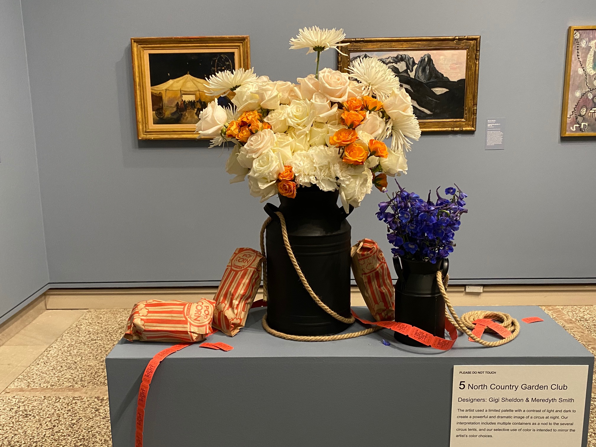 Three teams of North Country Garden Club floral designers participated in The Heckscher Museum of Art in Huntington Art in Bloom exhibition during the weekend of June 11-13. Our teams created floral arrangements inspired by works of art in the Museum’s centennial exhibition: The Heckscher Museum Celebrates 100. Three other Garden Club of America clubs took part in the exhibition: North Suffolk Garden Club, South Side Garden Club, and Three Harbors Garden Club. There were twelve designs overall and each was a unique and creative interpretation of one of the Museum’s pieces from its permanent collection.