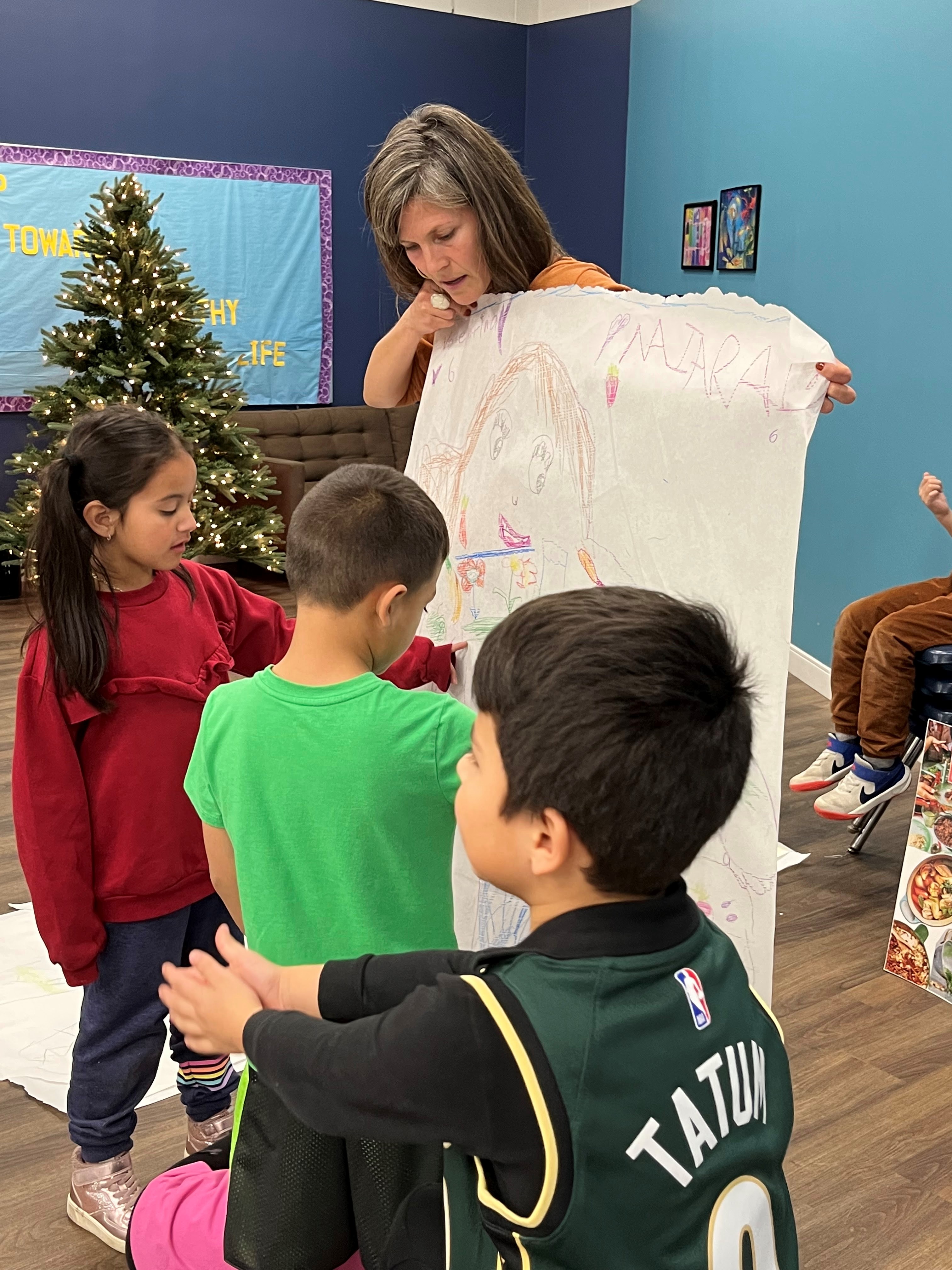 We have recently begun a series of sessions focused on gardens, nature, floral design and nutrition for the Glen Cove Boys & Girls Club’s after school program. The first session, held on December 8th was spearheaded by Hanna Robinson. Hanna spoke to the children (ages 6-8) about how to nourish their bodies with real, whole foods (plants and animals). As an activity, she had them trace their bodies and draw pictures, both inside and out, showing what would create a healthy environment to grow. The kids and presenters had a wonderful time together and both are eager to repeat the experience. The January 2023 session will teach the students about birds with the creation of a bird feeder. The February 2023 session will be about the benefits of composting.